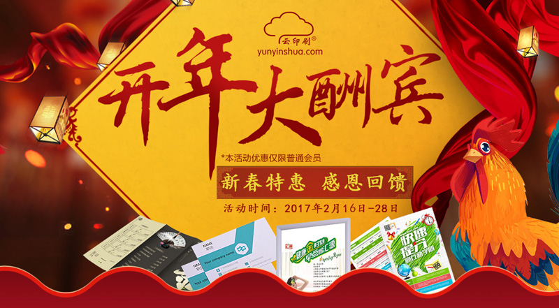 有句話說:好年頭必有好兆頭。2017,開市好禮降臨!云印刷開年大酬賓,印刷采購大優(yōu)惠,和你一起走鴻運(yùn)。
