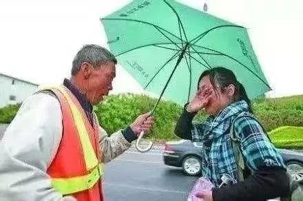 不僅撐起雨傘為她遮雨,還安慰起她來