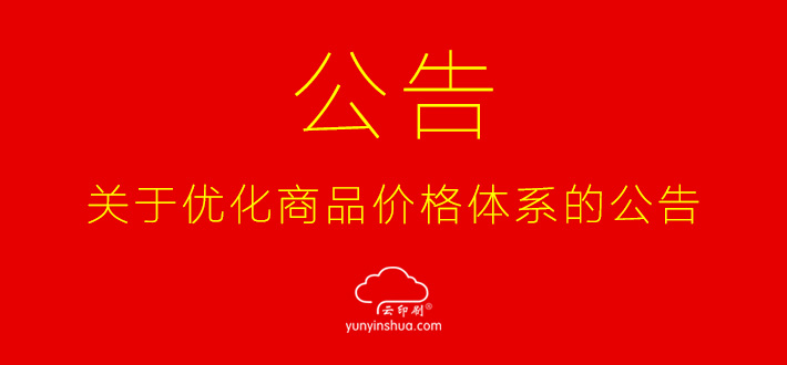 ? ? ? ?新的一年,新的氣象,為了給用戶提供更好的服務(wù)和體驗(yàn),我們對(duì)云印刷網(wǎng)價(jià)格體系在合理范圍內(nèi)進(jìn)行了一次整體優(yōu)化,優(yōu)化后的商品價(jià)格將更加符合市場(chǎng)規(guī)律,同時(shí)整體上更加優(yōu)惠,從而為客戶提供更具競(jìng)爭(zhēng)力的商品,讓合作伙伴擁有更大的利潤(rùn)空間。