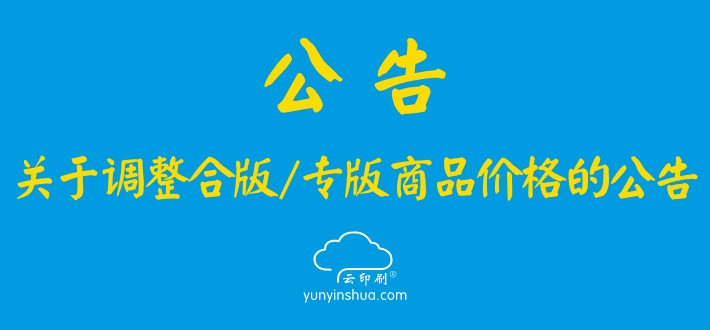 ? ? ? ?由于受原紙成本及輔料價(jià)格急劇上漲而導(dǎo)致生產(chǎn)成本的上升,為穩(wěn)定持續(xù)地向客戶提供高品質(zhì)的產(chǎn)品,自2017年3月10日起,云印刷網(wǎng)將對合版商品(包含合版單張、合版騎馬釘畫冊、合版無線膠裝畫冊)和專版商品的價(jià)格進(jìn)行適當(dāng)上調(diào),上調(diào)金額以屆時(shí)網(wǎng)站顯示的價(jià)格為準(zhǔn)。